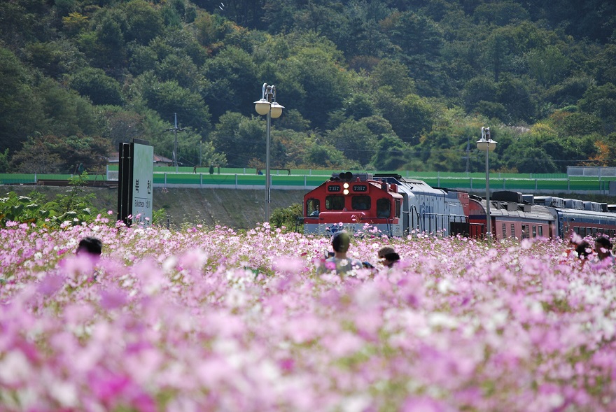 축제장 필수코스인 옛 북천역∼양보역 레일바이크는 1.2㎞의 이명터널에 화려한 빛과 음악, 하동의 사계를 벽화로 장식했으며, 내리막길 3.5㎞ 구간에 코스모스와 메밀을 심어 가을 간이역에서 만날 수 있는 낭만과 여유로움을 느낄 수 있다.