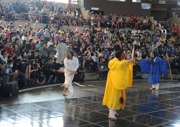 탈춤공연장에서는 오전 10시30분 아이들을 위한 공룡인형극을 시작으로 문을 연다. 낮 12시30분부터 중국과 남아프리카공화국, 스리랑카, 이스라엘 4개국 공연에 이어 경상남도 고성지방에 전승되는 탈놀이인 국가무형문화재 제7호 고성오광대 마당이 진행된다.