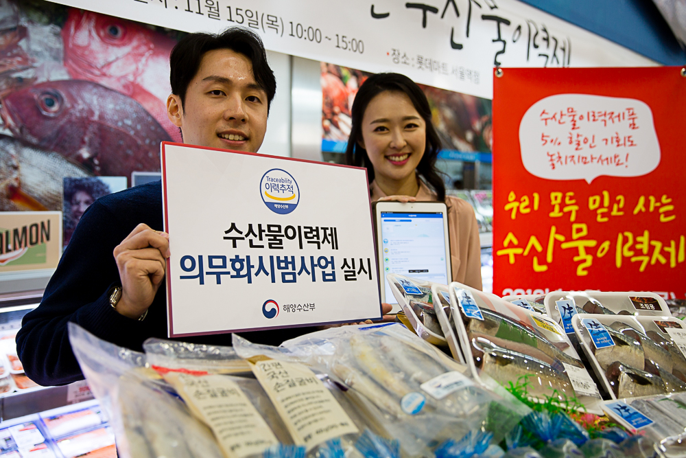 [환경일보] 해양수산부(장관 김영춘, 이하 해수부)가 15일(목) 롯데마트 서울역점 수산물코너에서 소비자를 대상으로 수산물이력제 의무화 시범사업을 알리고 제도 홍보를 비롯한 이력제품 소비활성화를 위해 ‘우리 모두 믿고 사는 수산물이력제’ 소비자 행사를 개최했다.