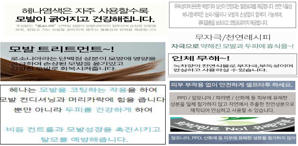 이중에는 알레르기 유발물질인 파라페닐렌디아민이 함유된 블랙헤나도 있었는데, ‘다양한 색상 구현’, ‘염색시간 단축’ 등의 장점만을 강조하고 화학성분 함유에 따른 부작용 발생 가능성은 언급하지 않아 더욱 문제가 있었다.
