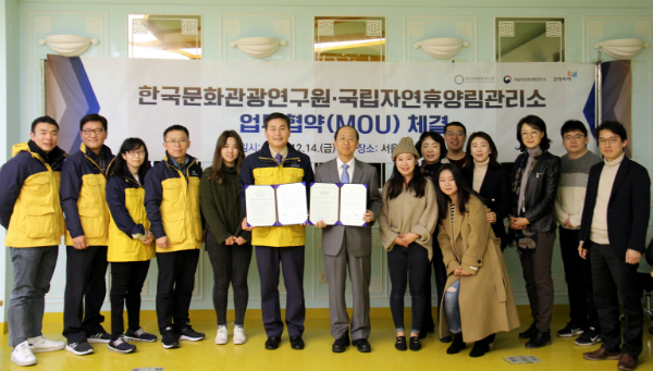 사업의 원활한 시행을 위해 국립자연휴양림관리소는 지난 12월 14일 문화·예술·관광 국책 연구기관인 한국문화관광연구원과 업무협약을 체결하고 공동 협력하기로 했다.