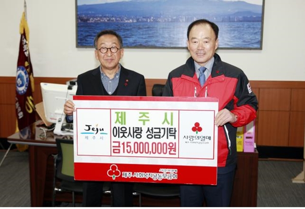 [제주=환경일보] 전재현 기자 = 제주시가 다가오는 연말을 맞아 '사랑의 열매’ 이웃돕기 성금으로 1,500만원을 기부했다고 18일 밝혔다.