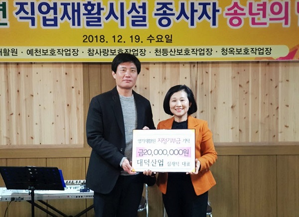 [안동=환경일보] 김희연 기자 = 안동시 남후면 남후농공단지 내 친환경식생블록을 생산하는 대덕산업은 장애인직원재활시설인 영가재활원의 중증장애인고용 확대와 장애인생산품 판로에 도움을 주기 위해 경상북도사회복지모금회를 통해 지정기부금 2천만 원을 기부했다.