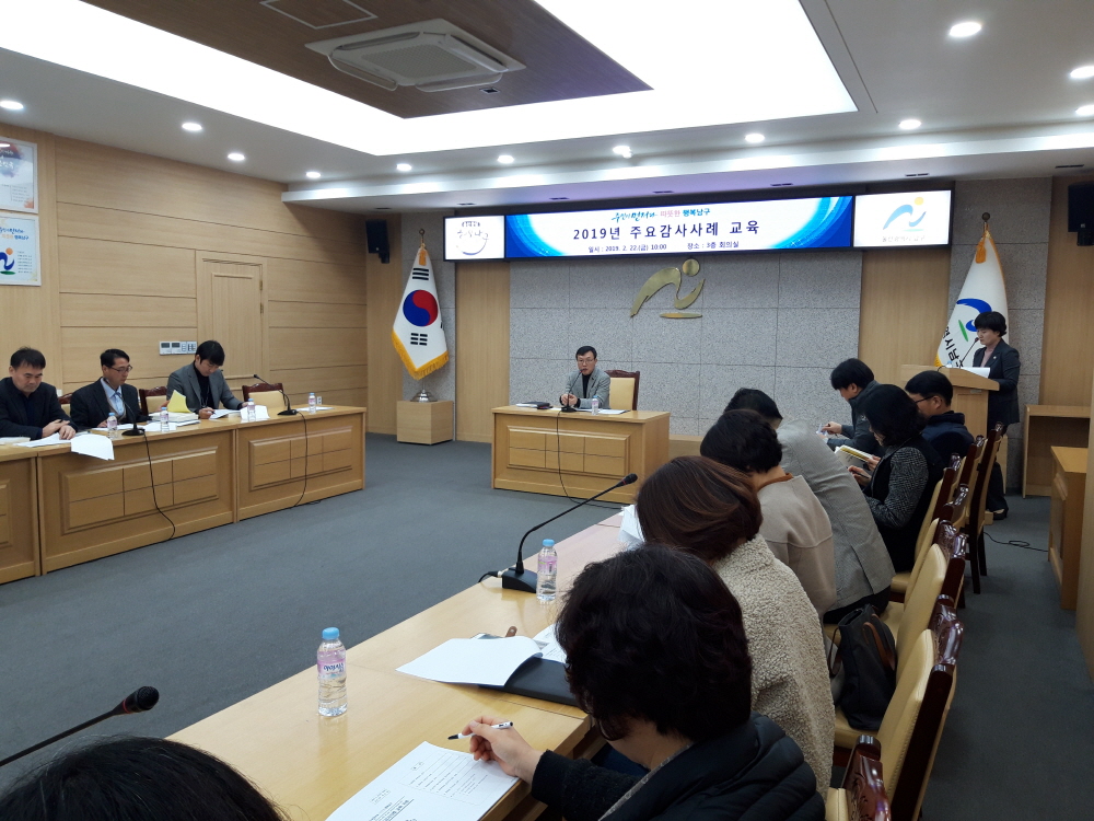 교육은 감사관실 주관으로 2018년 자체감사 결과로 나타난 문제점과 지적사례를 분야․유형별로 정리한 감사사례집 내용 중 자체감사 및 상급기관 감사 등에서 자주 지적되는 회계, 보조금 집행 등을 중점적으로 교육했다.