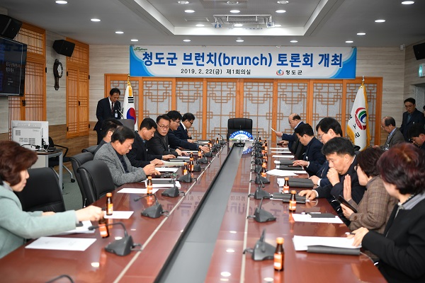 [청도=환경일보] 김철은 기자 = 청도군(군수 이승율)은 지난 22일 국가의 주요정책사업과 군정현안에 대하여 자유로운 토론 방식으로 진행하는 “브런치(BRUNCH) 토론회”를 국과소장 및 관련 업무담당 30여명이 참석한 가운데 군청 제1회의실에서 개최했다.