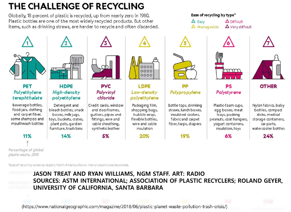 플라스틱은 종류에 따라 재활용 가능성에 차이를 보이는데 문제는 우리가 사용하는 플라스틱 제품들은 모두 여러 종류의 재질이 동시에 섞여 있다는 점이라 그는 지적했다.