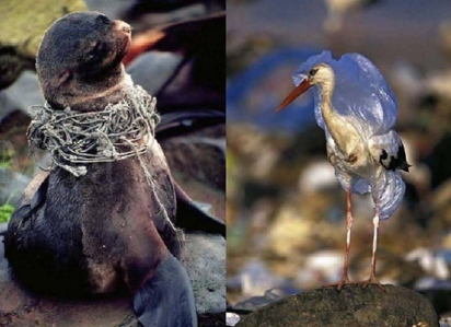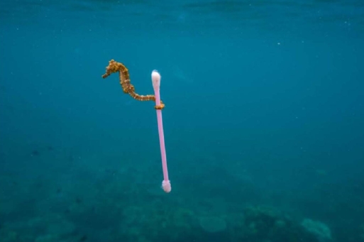 이어 그는 플라스틱으로 인해 목숨을 잃은 알바트로스와 플라스틱 물체가 몸에 엮여버린 해마의 사진을 비롯한 해양생태계 오염 사진을 우리에게 제시했다.