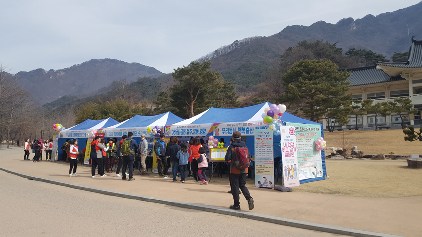 지난 9일 토요일 이른 아침, 휴일을 반납한 문경시보건소 건강관리과 직원들은 문경새재 일원에 건강체크부스를 설치하고 이곳을 찾은 관광객들에게 건강 체크도 해 주고 홍보물품도 나눠 주면서 문경을 알리는 시간을 가졌다.