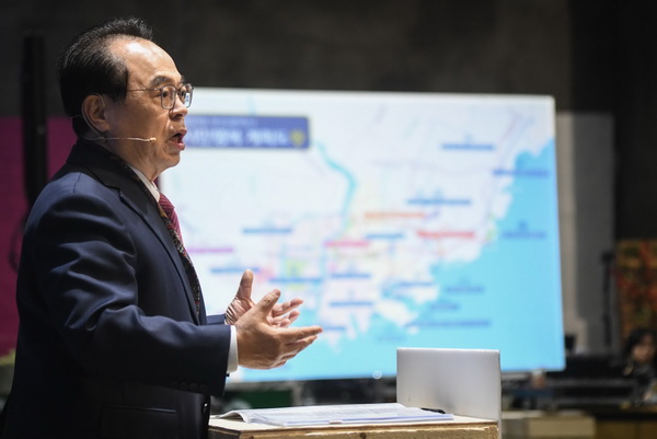 이날 오거돈 시장이 제시한 영도구 미래비전인 ‘해양 과학기술과 해양관광의 메카, 영도’를 위한 세부사업으로, 특화된 도시재생사업 적극 지원하고 해양신산업 스마트시티 조성해 남외항 다목적 방파제 및 감지해변 방파제 건설 등의 사업을 발표했다.