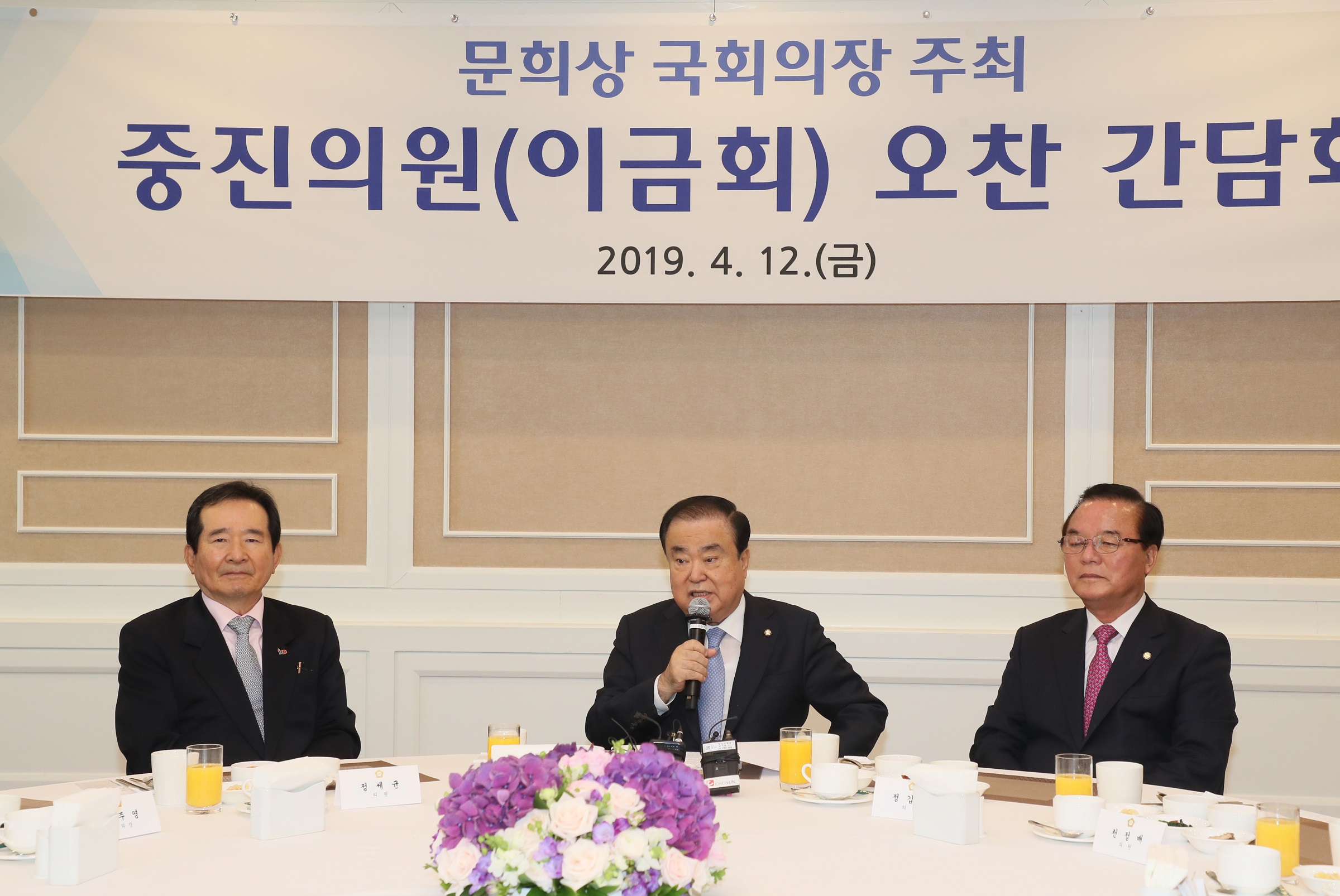 [환경일보] 문희상 국회의장은 4월12일(금) 국회 3층 귀빈식당에서 여아 5선 이상 중진의원 모임인 이금회 의원들과 정례 오찬회동을 갖고 의원외교의 중요성과 함께 혁신 필요성을 강조했다.