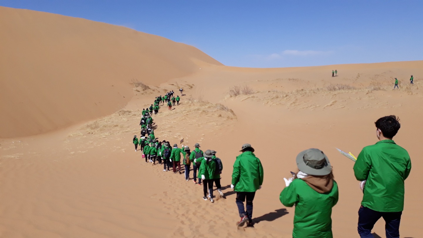 지난 3월 26일부터 4월 2일까지 한국국제교류재단(KF, 이시형 이사장)이 주최하고 (사)한중문화청소년협회 미래숲(권병현 대표)이 주관한 ‘2019 KF 한중 녹색봉사단 중국파견사업’ 중에도 이곳에 나무를 심었다. 3월의 마지막 날 쿠부치 사막은 영하 4℃ 정도로 추웠다. 매섭게 파고드는 한기에 몸이 떨려왔지만, 한국과 중국의 청년들, 전문가, 관계자, 현지 주민 등 300여명이 한마음으로 나무를 심었다.