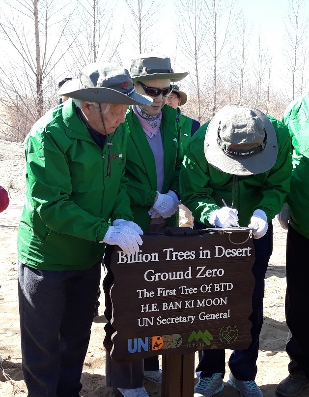 한편, 반기문 전 총장을 비롯한 참가자들은 이날 전 세계 70억 시민 모두 ‘사막에 내 나무 심기(BTD, Billion Trees in Desert)' 프로그램 홍보를 위해 녹색장성 확장 운동의 시발점인 ‘그라운드 제로(Ground Zero)'를 설정하고 기념했다.