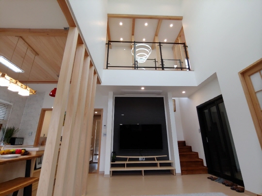 히노키 원목은 피톤치드, 음이온 방출로 새집증후군 및 아토피를 예방하며 내진설계, 중목구조로 안전성, 내화성, 내구성을 향상시켰다.