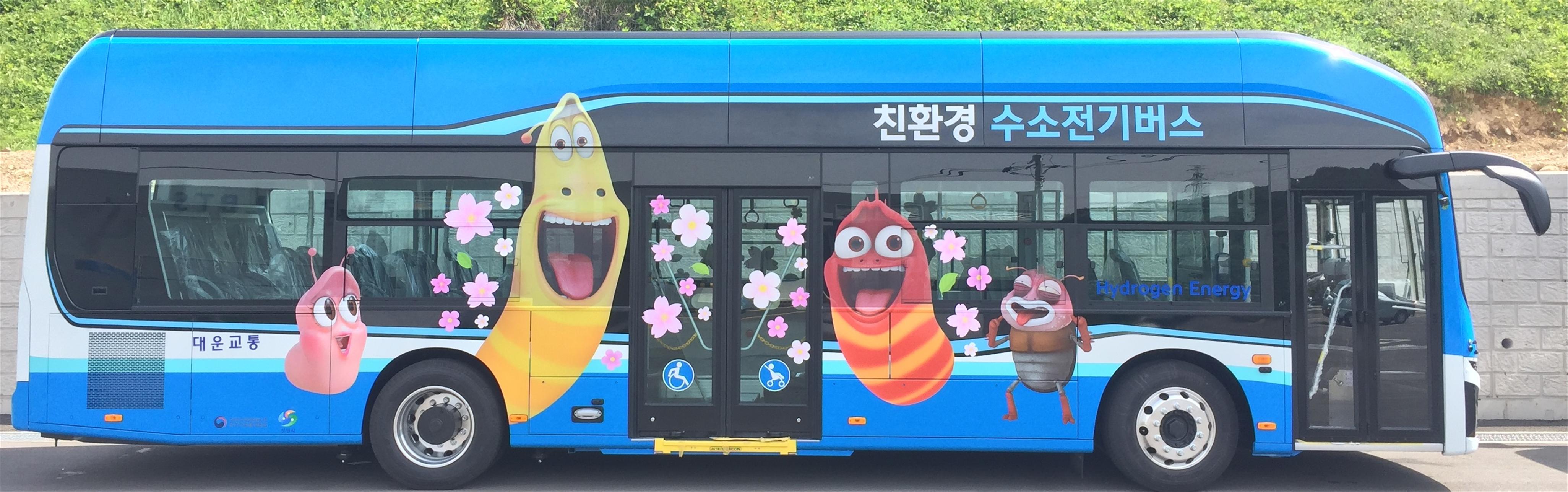 창원시 수소버스는 미세먼지 문제 해결을 위한 국가기후환경회의 홍보대사 ‘라바’ 캐릭터로 버스 외관을 꾸며, 시민들이 보다 친근하게 수소버스를 받아들이도록 했다.