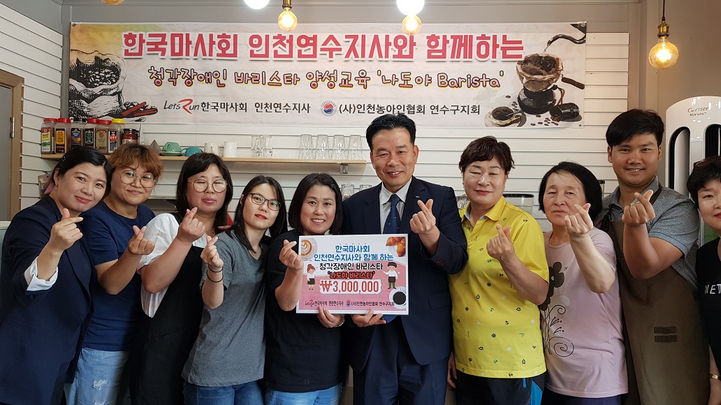 [인천=환경일보]김정규 기자 = 한국마사회 인천연수지사는(지사장 채창호)는 6월 19일(수) 청각장애인들의 사회참여 지원을 위한 ‘나도야 바리스타(Barista)’ 양성교육 사업에 기부금을 후원하는 전달식을 실시했다.