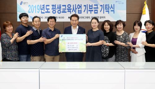 이날 기탁식엔 백 시장을 비롯해 처인장애인복지관, 자봉써니밸리 등 평생학습기관 관계자, 주상봉 용인시인재육성재단 이사장 등 16명이 참석했다.
