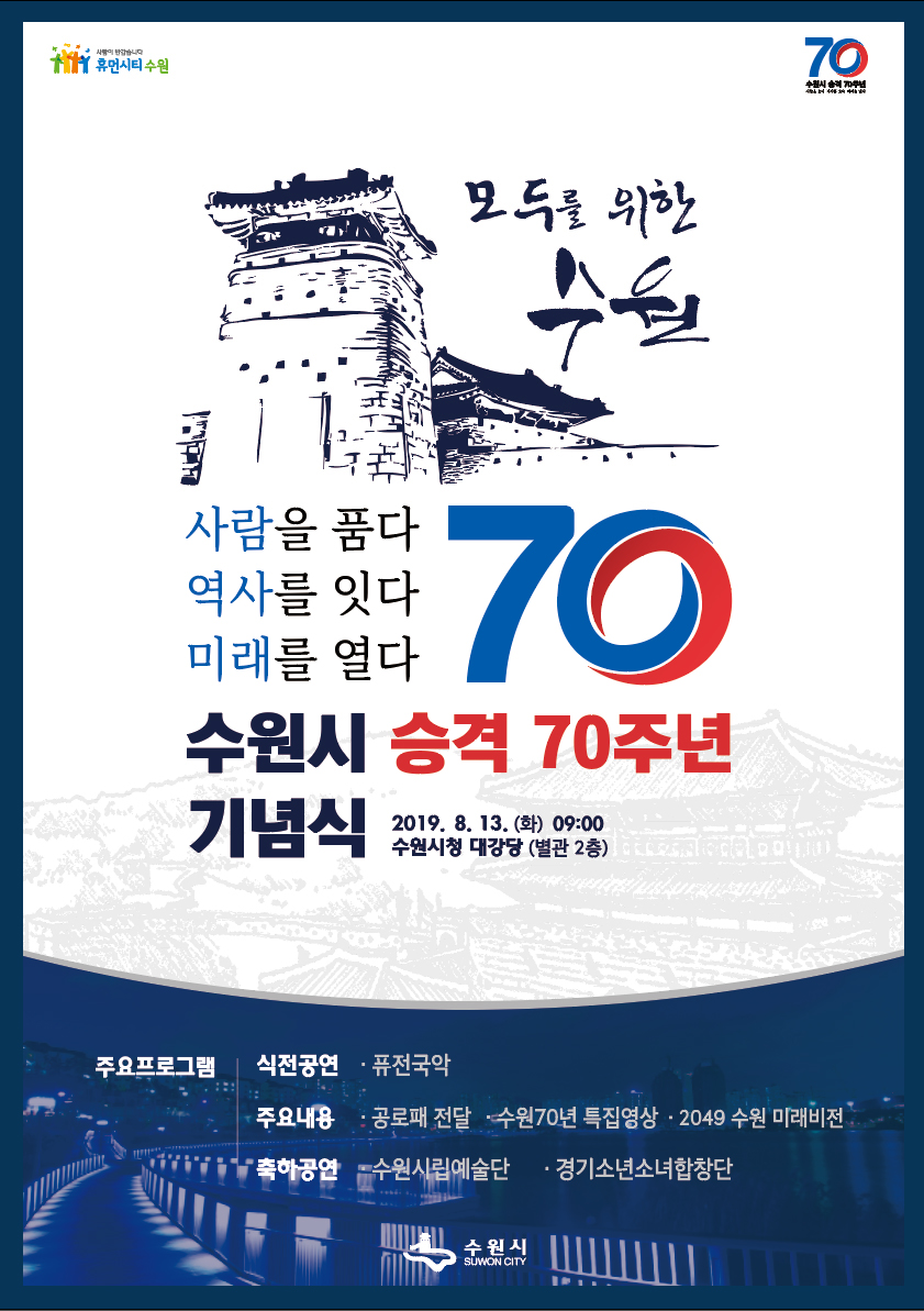 [수원=환경일보] 최용구 기자 = 수원시가 ‘시 승격 70주년’을 맞아 시민이 중심이 되는 다양한 기념행사를 개최한다.