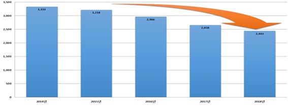도로교통공단 통계에 따르면 최근 5년(2014년~2018년) 간 발생한 초등학생 보행자 교통사고 건수는 총 1만4618건이며, 그 중 어린이보호구역 내에서 발생한 사고는 1743건이었다.