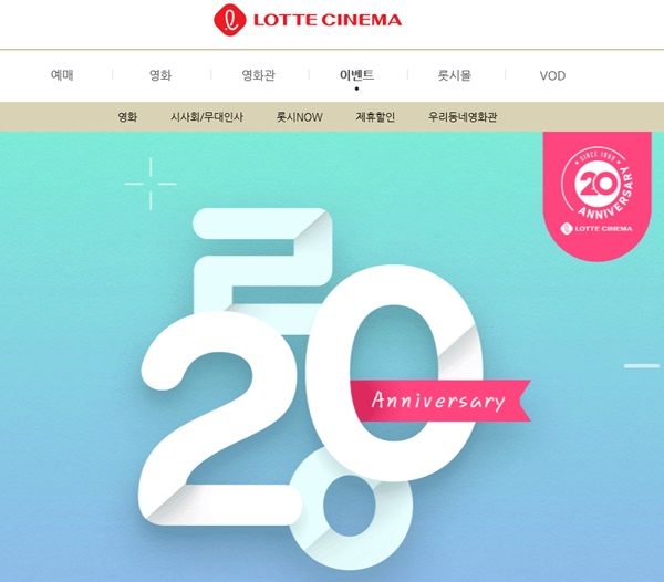 롯데시네마 20주년 광고와 함께 관련 행사가 업계를 사실상 초토화시키고 있다.