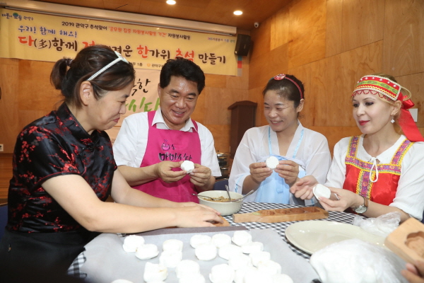 지난 10일 박준희 구청장도 봉사활동에 참여했다. 박 구청장은 삼성동시장 입구에 위치한 행복나무에 방문해 다문화 가족, ‘행복한 마마식당’ 아이들과 함께했다. 아이들과 한국의 송편, 중국의 월병, 러시아의 바레니키 등 나라별 전통음식을 만들어 보고 봉사자들을 격려했다.