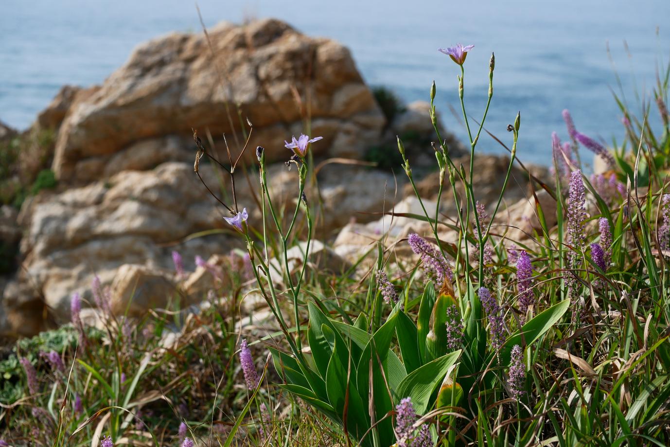 대청부채는 붓꽃과 식물로 잎이 부채처럼 퍼지고 8~9월에 연한 보라색 꽃이 핀다.