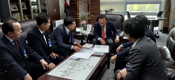 [고령=환경일보]강석조 기자 = 고령군(군수 곽용환)은 지난 28일 국회 국토교통위원회 박덕흠 자유한국당 간사를 방문하여 ‘남부내륙고속철도 고령역’설치를 건의 하고 3만 5천 군민의 염원을 담은 건의문과 서명부를 전달했다.
