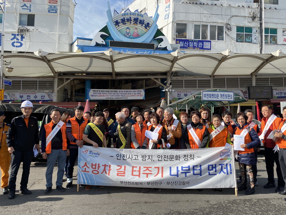 이날 훈련은 실제 화재상황을 설정해 시장 내 소방차가 출동할 수 있는 도로 폭인 노란선 밖으로 나와 있는 좌판을 안으로 이동시켜 소방차와 부산진구청 교통지도 단속차가 부전시장을 관통하는 훈련으로, 시장상인들로 하여금 소방출동로 확보에 대한 경각심을 갖게 하는 계기가 됐다.