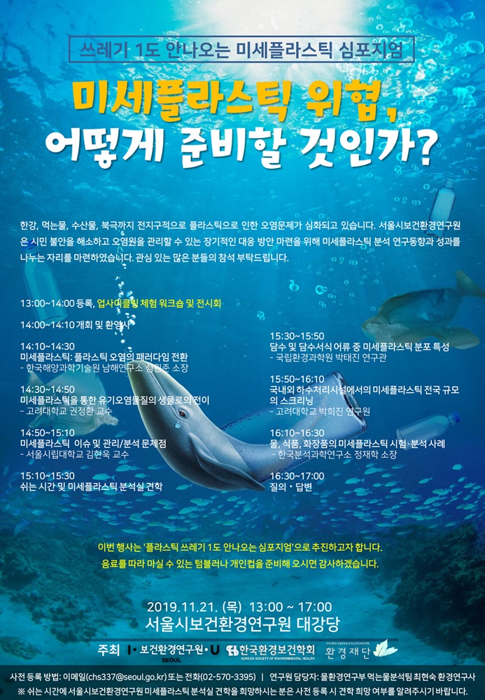 [환경일보] 이채빈 기자 = 서울시보건환경연구원은 한국환경보건학회, 환경재단과 함께 오는 21일 오후 2시 경기도 과천시 서울시보건환경연구원에서 미세플라스틱 심포지엄을 개최한다.