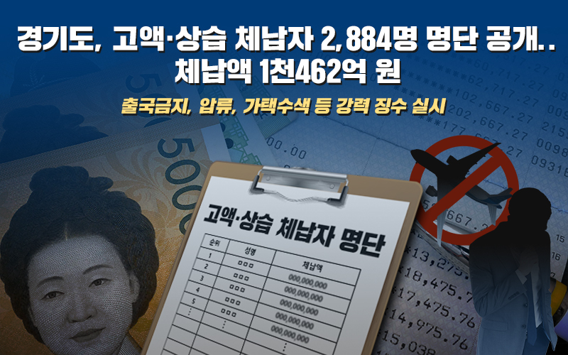 [경기=환경일보] 최용구 기자 = 경기도가 1000만원 이상의 세금을 내지 않은 고액·상습 체납자 2884명의 명단을 20일 경기도 홈페이지와 경기도보 및 위택스(지방세 납부 사이트)를 통해 공개했다.
