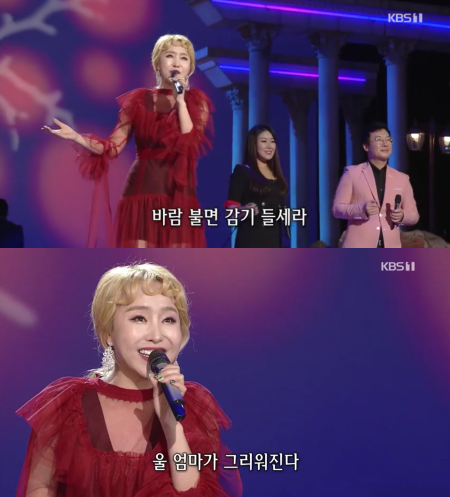 20일 방송 된 KBS ‘가요무대’ 후반부에 트로트 가수 이채윤이 애절한 무대를 보여주었다.