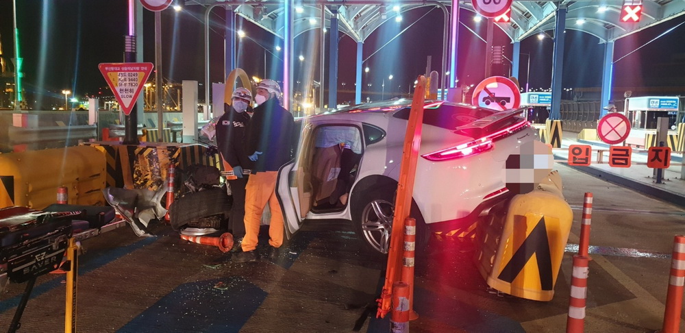 [부산=환경일보] 권영길 기자 = 부산시 남부경찰서는 2월4일 새벽 0시27분경 남구 부산항대교 요금소 하이패스 2번 부스 앞 방호벽을 충격해 운전자 A(남, 40대)씨의 포르쉐차량 전면부위가 완파되고 A씨는 중상을 입고 병원으로 후송됐다고 밝혔다.