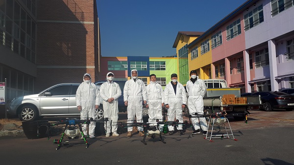 드론 3대을 이용하여 지난 20일 16개교를 대상으로 방역소독을 실시했다. 드론 방역소독은 사람이 직접 소독제를 뿌리는 기존 방식과 비교해 훨씬 더 넓은 영역을 소독할 수 있으며, 노출 위험도 줄일수 있고 분사 속도가 빨라 시급성을 다투는 작업에도 적합하다고 한다.