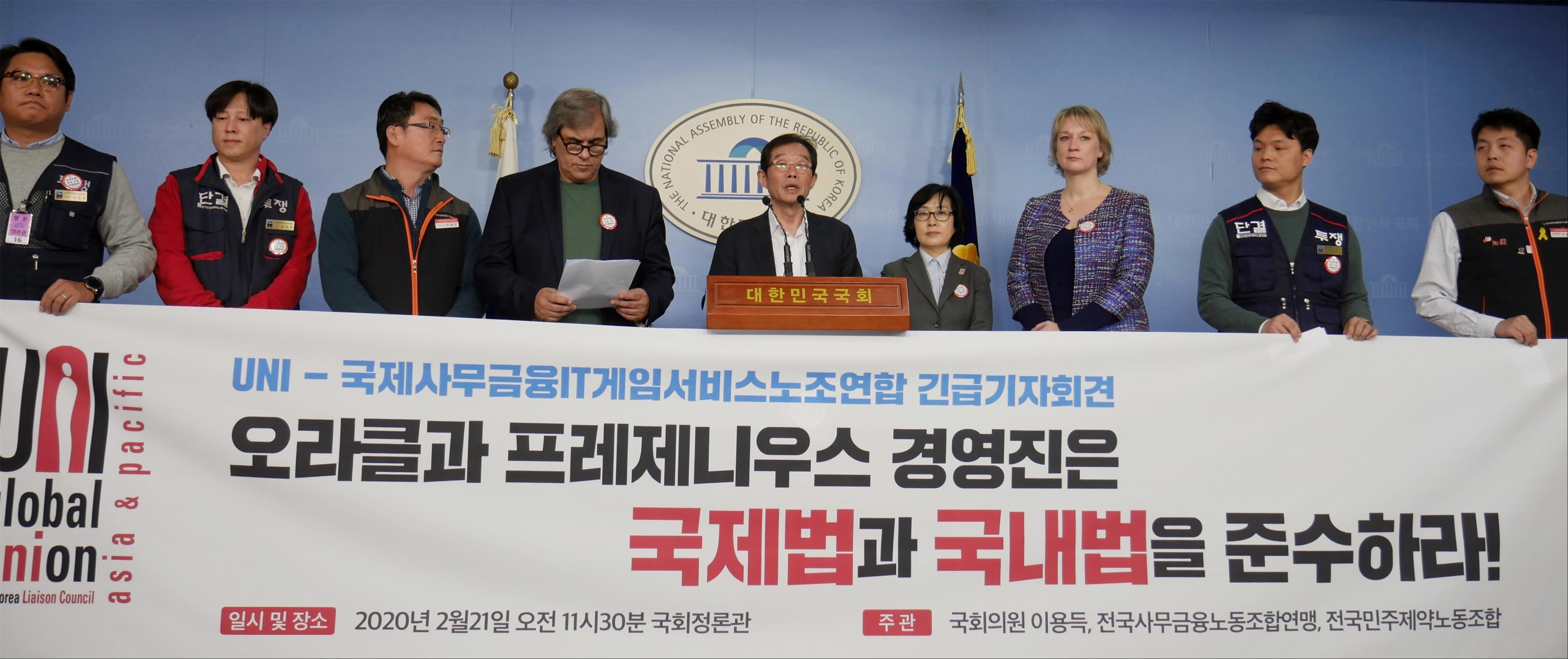 UNI 의장 Ruben Cortina, 사무부총장 Ms. AlkeBoessiger는 “UNI 차원에서 사무금융노조 한국오라클지부와 민주제약노조 프레제니우스의 투쟁이 승리할 때까지 지원할 것이다. 오라클과 프레제니우스 경영진은 국제법과 국내법을 준수하라”고 촉구했다.