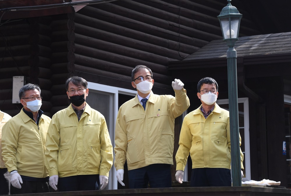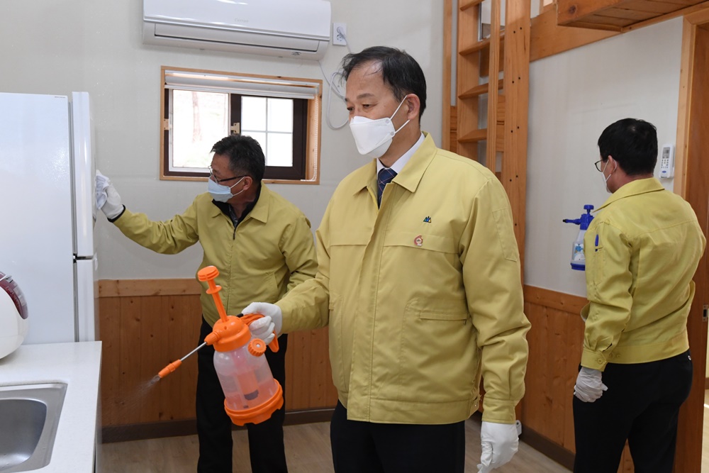 박종호 산림청장은 이날 방역 상태를 점검한 뒤 직원들과 객실 내부를 소독했다. 박 청장은 “코로나19 확산 방지와 이용객의 안전을 위해 직원들에게 최선의 노력을 다해 달라”고 당부했다.