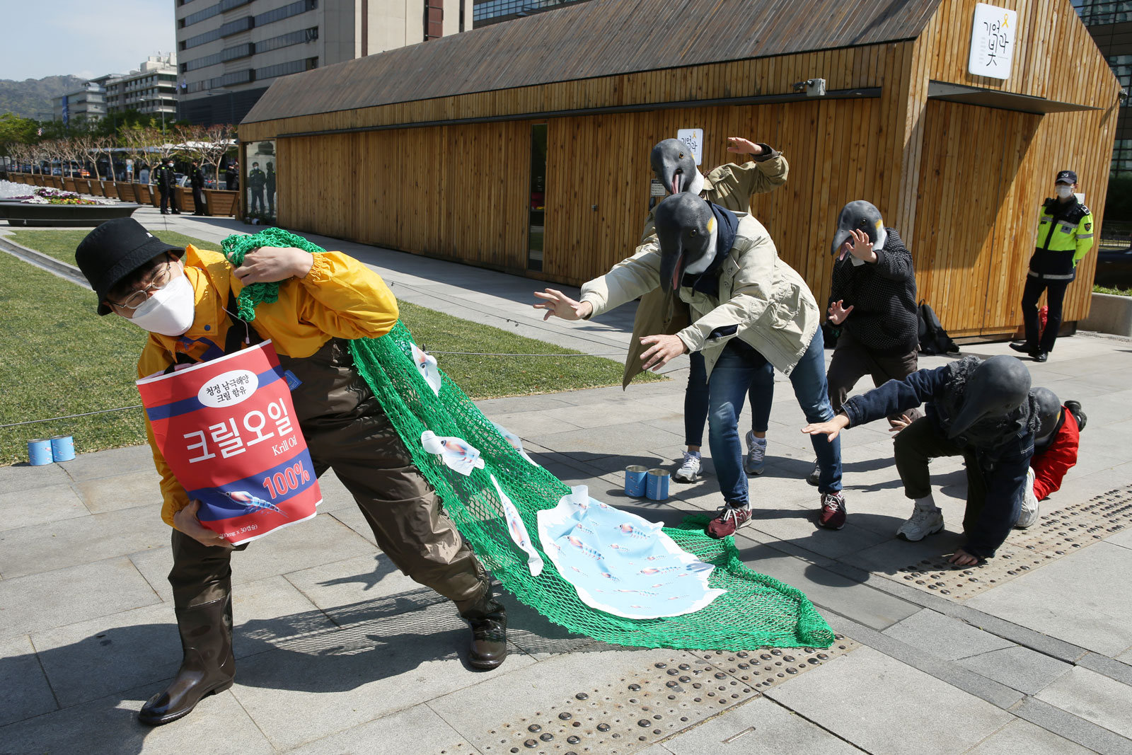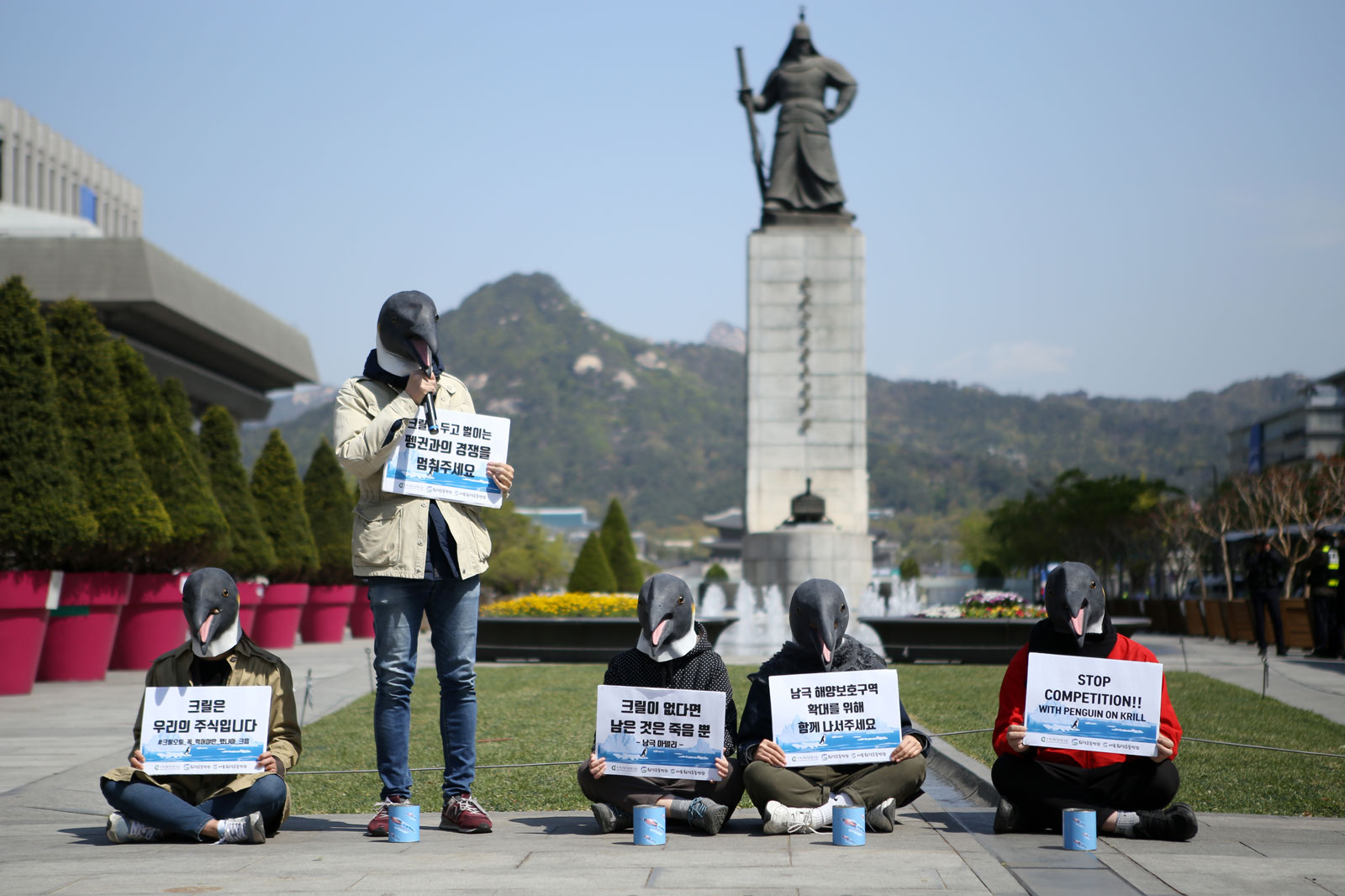 [환경일보] 24일 환경운동연합, 서울환경운동연합, 시민환경연구소 등 시민단체는 세계 펭귄의 날을 앞두고 광화문에서 남극 크릴이 크릴 오일의 원료로 사용돼 펭귄들이 굶고 있다며 배고파하는 퍼포먼스를 연출했다.