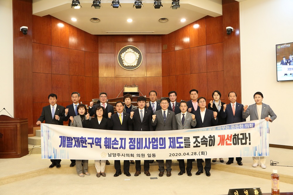 [남양주=환경일보] 김인식 기자=남양주시의회(의장 신민철)는 28일 열린 제268회 임시회 제2차 본회의에서 전용균 의원의 대표발의로 ‘개발제한구역 훼손지 정비사업 제도개선 촉구 건의안’을 만장일치로 채택했다.