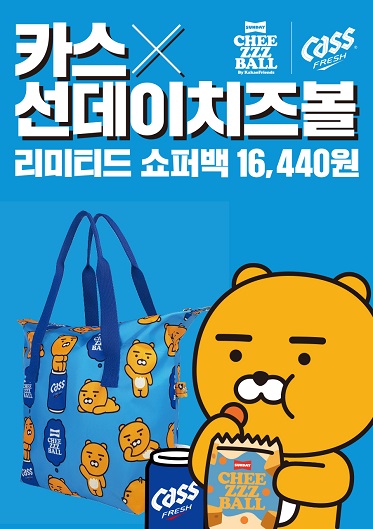 오비맥주는 카스와 카카오IX의 스낵브랜드 ‘선데이치즈볼’과 협업한 ‘카스X선데이치즈볼’ 리미티드 쇼퍼백 에디션을 선보였다. 카스맥주 12캔(355㎖)과 선데이치즈볼 오리지널 슬림(35g) 1팩이 라이언 캐릭터가 인쇄된 쇼퍼백에 들어있다. 패키지만 구입하면 안주를 따로 구입할 필요가 없어 편하다. 맥주안주의 대명사인 치즈볼이 있으니 단짠(달고 짠)의 맛과 맥주를 원스톱으로 즐길 수 있다.