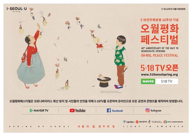 [환경일보] 김봉운 기자 = 서울시가 광주시와 공동으로 5·18민주화운동 40주년을 기념하는 ‘오월평화페스티벌’을 ‘서울의 봄, 광주의 빛’이란 슬로건으로 개최한다. 무관객‧온라인 행사로 열어 국내는 물론 세계인이 공감하는 기념 행사를 만든다는 계획이다.