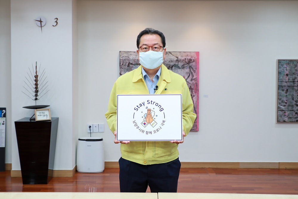 [남양주=환경일보] 김인식 기자 = 경기 남양주 조광한 시장은 28일 집무실에서 코로나19 극복을 위한 ‘스테이 스트롱’ 캠페인에 동참했다.