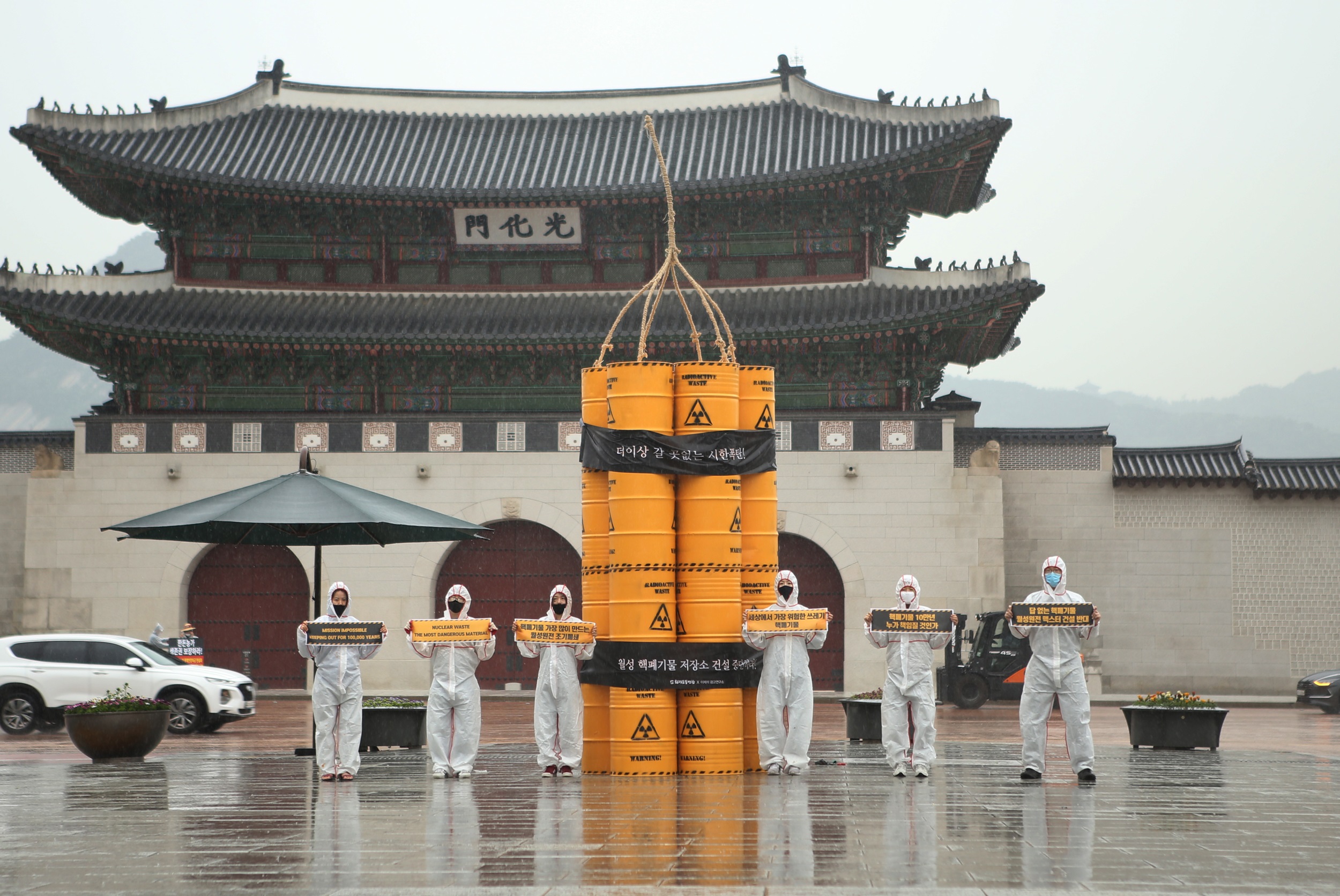 [환경일보] 환경운동연합은 월성원자력발전소 핵폐기물 임시저장시설(맥스터) 추가건설에 대한 울산 북구 주민들의 찬반 주민투표를 앞두고, 6월2일 광화광장에서 추가건설 반대를 표명한 시민 1000인 선언과 함께 원자력발전소에서 나오는 핵폐기물의 위험성을 알리는 퍼포먼스를 진행했다.