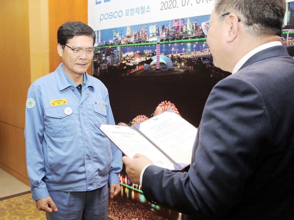 [부산=환경일보] 권영길 기자 = 경상북도 포항시 소재 포스코(POSCO)는 7월7일 오후 2시경 본사 11층 포토월에서 ISO45001 인증서와 인증현판 전달식을 개최했다.