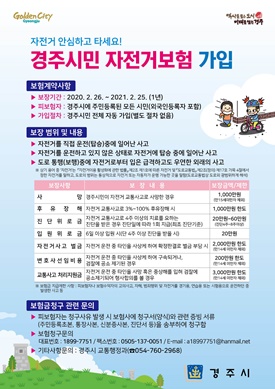 경주시에 주소를 둔 시민(외국인 포함)이면 별도의 절차·조건없이 자동가입되며, 경주시 관내뿐만 아니라 타 지역에서 일어난 사고도 보험 혜택을 받을 수 있다.