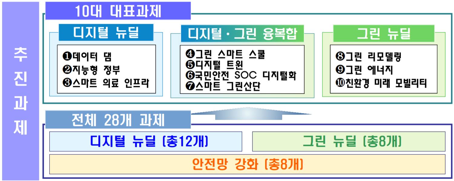 당·정·청 간 긴밀한 협업을 통해 ‘한국판 뉴딜 세부과제’ 중 미래 비전을 제시하는 과제를 10대 대표과제로 선정했다.