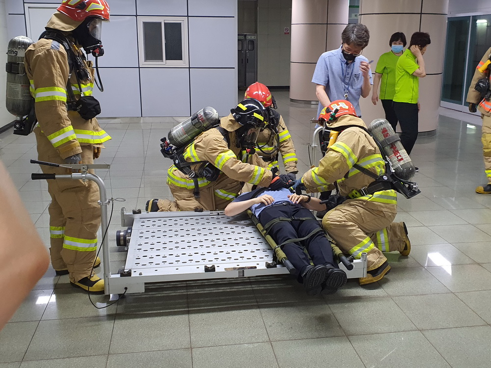 이 훈련은 테러 등 각종 원인으로 화재가 발생한 상황을 가상해서 역사 간의 선로진입과 환기구 등 다양한 진입을 시도해 고립된 사상자 구조와 역사 내 화재진압을 중점적으로 실시했다.