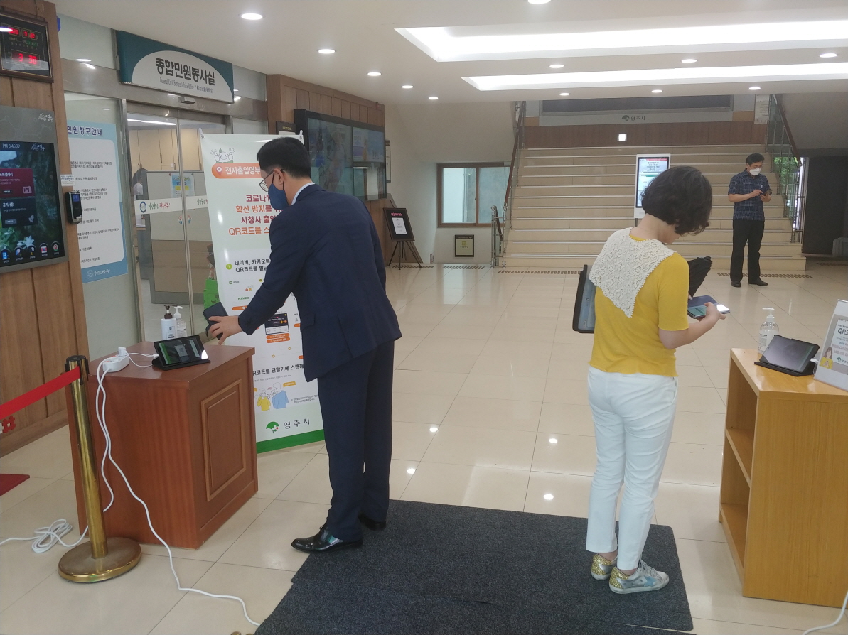 ‘전자출입명부’는 질병관리본부의 역학조사시스템과 연계돼 있으며, 방문자가 ‘네이버’, ‘카카오톡’, ‘Pass’ 앱을 활용해 QR코드를 생성 받아 건물 입구에 설치된 리더기에 스캔하면 방문기록이 생성되며, 수집된 정보는 시에 남지 않고 암호화되어 4주후 자동 폐기된다.