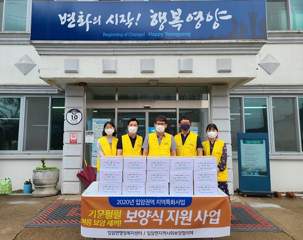 [영양=환경일보] 이승열 기자 = 영양군 입암면 지역사회보장협의체(공공위원장 임정재, 민간위원장 김갑열)에서는 지난 30일부터 입암권역(입암면, 청기면, 석보면) 사례관리대상자 30가구를 대상으로 ‘2020년 기운펄펄 여름보양세끼! 보양식 지원 사업’을 추진한다고 밝혔다.