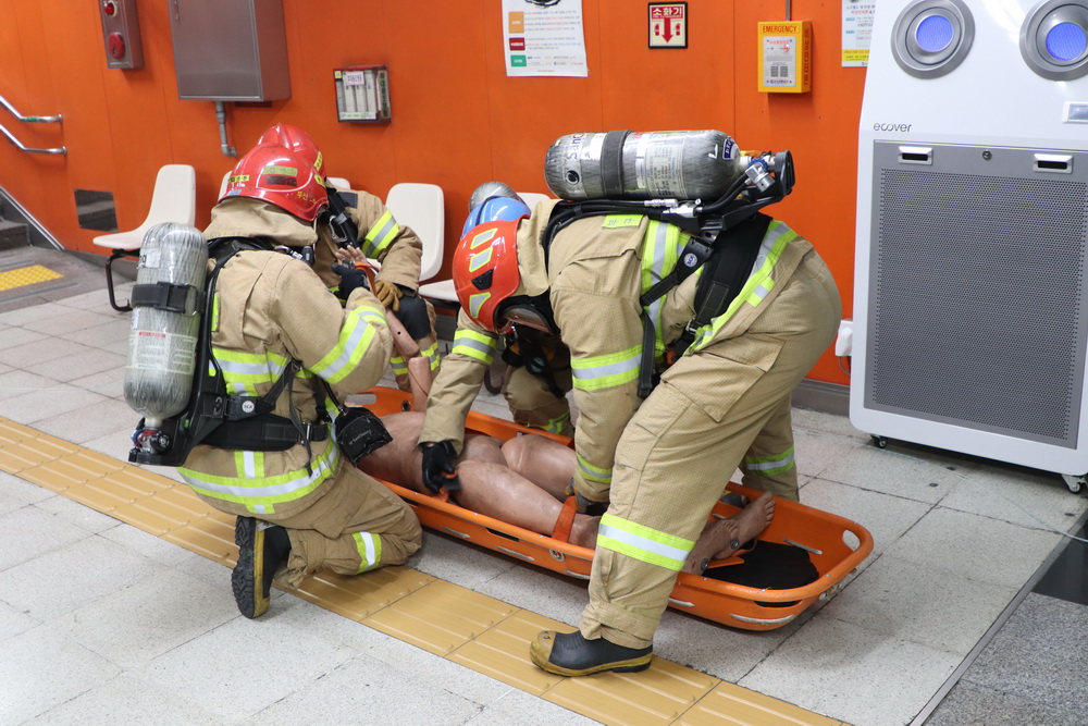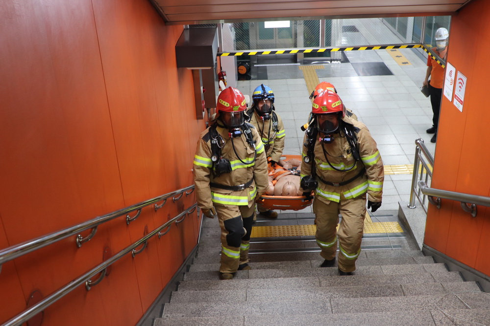 주요내용은 지하역사내 인명구조 동선 및 피난로 확보, 스크린도어 개방훈련, 무선통신장비 점령훈련, 철도역사 소방시설 위치확인 등 다양한 방면으로 훈련이 이뤄졌다.