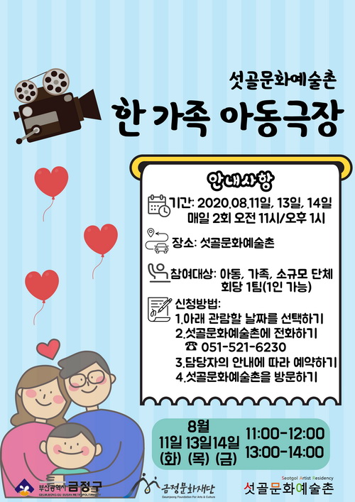 '한가족 아동극장'의 자세한 내용은 금정문화재단 홈페이지에서 확인할 수 있다.
