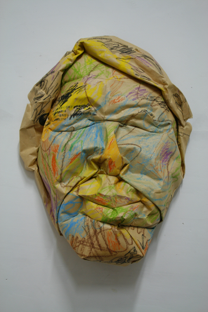 폴리는 서류봉투를 구겨서 사람 얼굴의 표정들을 나타내거나 이번 전시에서는 선보이지 못하고 있지만 폐박스를 활용해 따뜻한 사회를 꿈꾸며 작업을 한다.