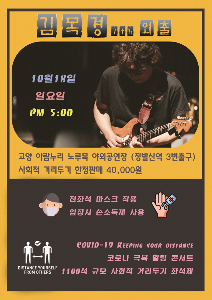 한편, 김목경의 정규 7집 ‘외출’ 발매를 기념하는 이번 콘서트는 인터파크와 위메프, 고양문화재단에서 예매 가능하다. 최근 코로나19로 인한 사회적 거리두기를 시행하고 있는 정부 방침에 따라 1,100석 규모의 공연장이지만 선착순으로 400석만 판매된다.